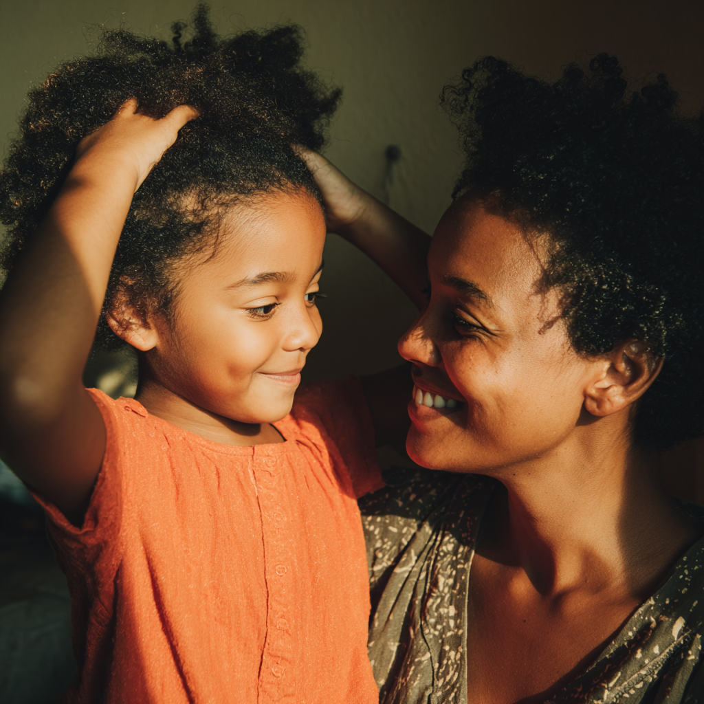 Et si chaque soin devenait un moment complice, un rituel simple et joyeux qui aide ta fille à aimer ses cheveux…et à s’aimer elle-même ?